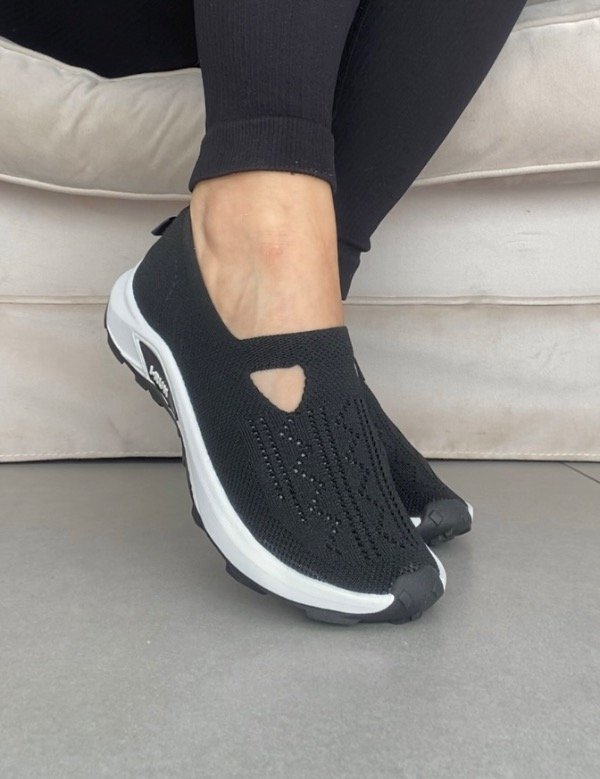 Calzado elastizado con suela anatómica de goma antideslizante.